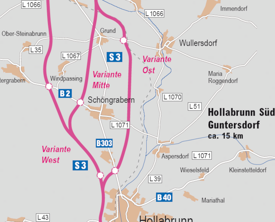 Die österreichische Straßenbaugesellschaft ASFINAG plant in Niederösterreich zwischen Hollabrunn Süd und Guntersdorf den Neubau der Schnellstraße 3 (Weinviertler Schnellstraße). Dieser ca. 15 km lange Neubauabschnitt dient der Verbesserung der Verkehrsverbindung zwischen Tschechien und dem Großraum Wien sowie der Entlastung bestehender Ortsdurchfahrten.