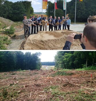 Vertreter:innen von Bund und Land haben am 25.8.2017 mit einem symbolischen Spatenstich den Startschuss für den Baubeginn für die B66 Ortsumgehung Barntrup in Ostwestfalen gegeben.
