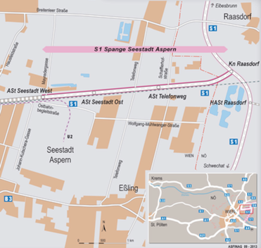 Die österreichische Straßenbaugesellschaft ASFINAG plant mit dem Projekt S 1 Spange Seestadt Aspern eine ca. 4,6 km lange Stadtautobahn, um den 22. Wiener Gemeindebezirk „Donaustadt“ mit der geplanten S 1 Schwechat-Süßenbrunn zu verbinden. Die S 1 Spange Seestadt Aspern ist Teil eines großen Infrastrukturmaßnahmenpaketes für den Nordosten Wiens und ergänzt das System des Regionenrings. Im hochrangigen Verkehrsnetz von Wien und der österreichischen Ostregion bildet das Projekt zwischen dem Knoten Raasdorf und der ASt Seestadt West die Ergänzung des bestehenden und in Planung befindlichen Bundesstraßennetzes.