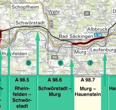 Die Bosch & Partner GmbH wurde von der DEGES GmbH in Stuttgart mit der umweltfachlichen Unterstützung, Beratung und Planung des ca. 10 km langen Abschnittes A98.6 beauftragt. Der Auftrag umfasst die Erstellung der zentralen umweltfachlichen Gutachten für den vorgelagerten Variantenvergleich (Umweltverträglichkeitsstudie, FFH-Variantenvergleich, Variantenvergleich aus Artenschutzsicht, Mitarbeit beim Gesamtvariantenvergleich) und für die Detailplanung auf Planfeststellungsniveau (Landschaftspflegerischer Begleitplan, Artenschutzfachbeitrag, FFH-Verträglichkeitsprüfung, UVP-Bericht). Für den Variantenvergleich wurde zusammen mit dem technischen Planenden und dem Auftraggebenden eine differenzierte Methode entwickelt. Im Rahmen mehrerer Planerworkshop wurde auf dieser Grundlage gemeinsam eine Variantenentscheidung getroffen.